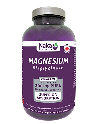 Naka Platinum Magnesium Bisglycinate Complex, 200mg PURE Elemental Magnesium each capsule, Superior Absorption, Made in Canada (330 vcaps (Pack of 1))