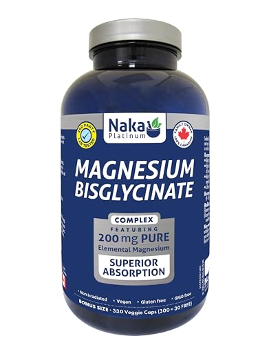 Naka Platinum Magnesium Bisglycinate Complex, 200mg PURE Elemental Magnesium each capsule, Superior Absorption, Made in Canada (330 vcaps (Pack of 1))