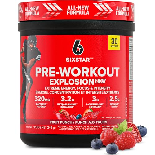 - Ignite Your Training Sessions: SIXSTAR Pre-Workout Explosion 2.0 fires up your workouts with extreme energy, focus, and intensity.* Fruit Punch flavour. 30 scoops per tub.