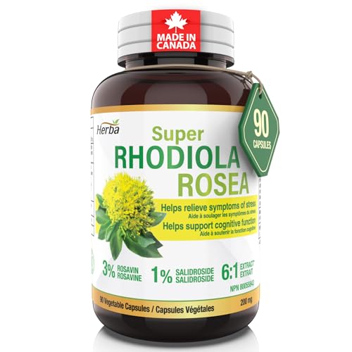 Herba Rhodiola Rosea Supplement 200mg - 90 Capsules | 6:1 Extract | Rhodiola Supplement with Min 3% Rosavins and 1% Salidrosides | Help Relieve Symptoms of Stress | Made in Canada